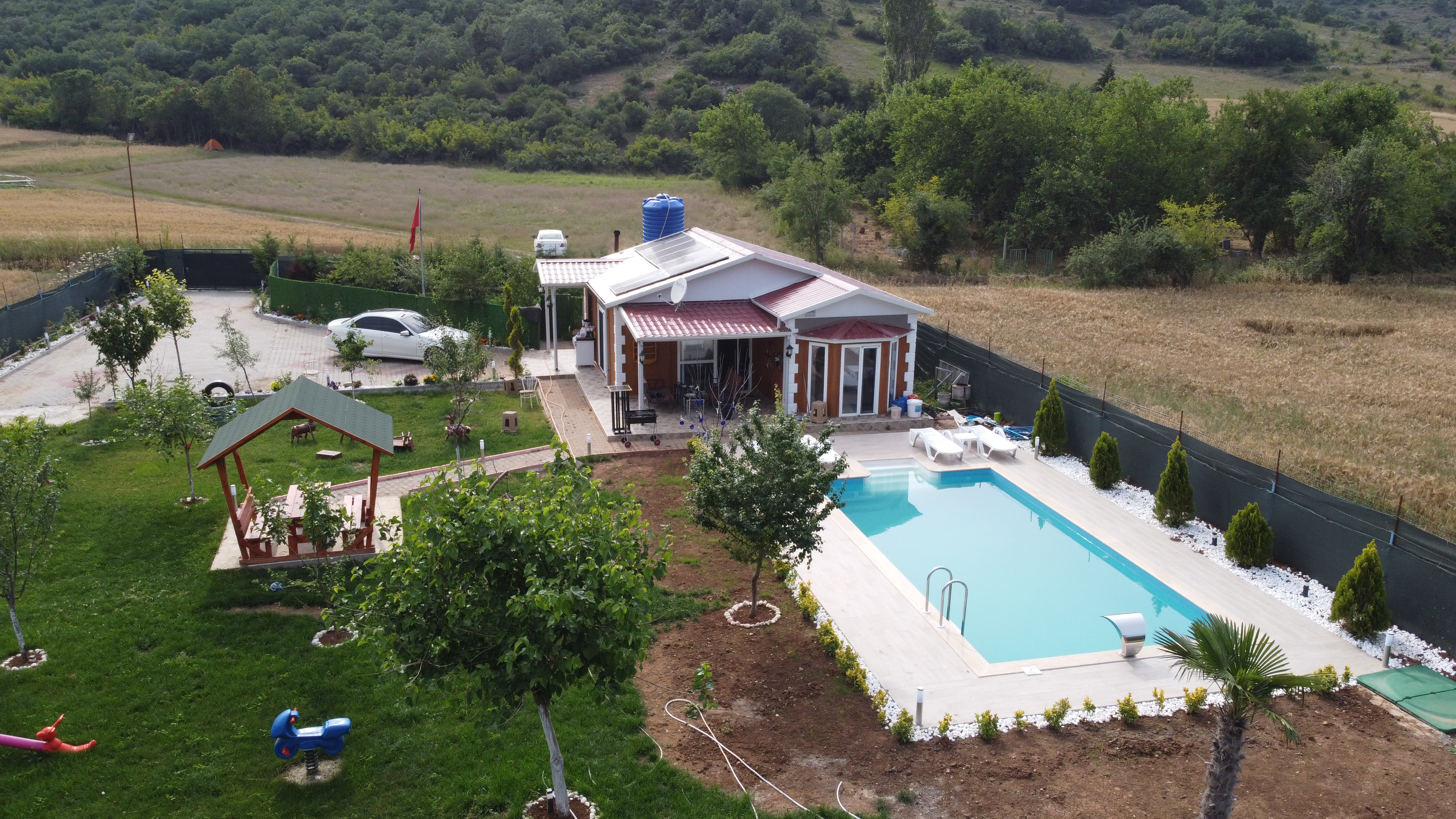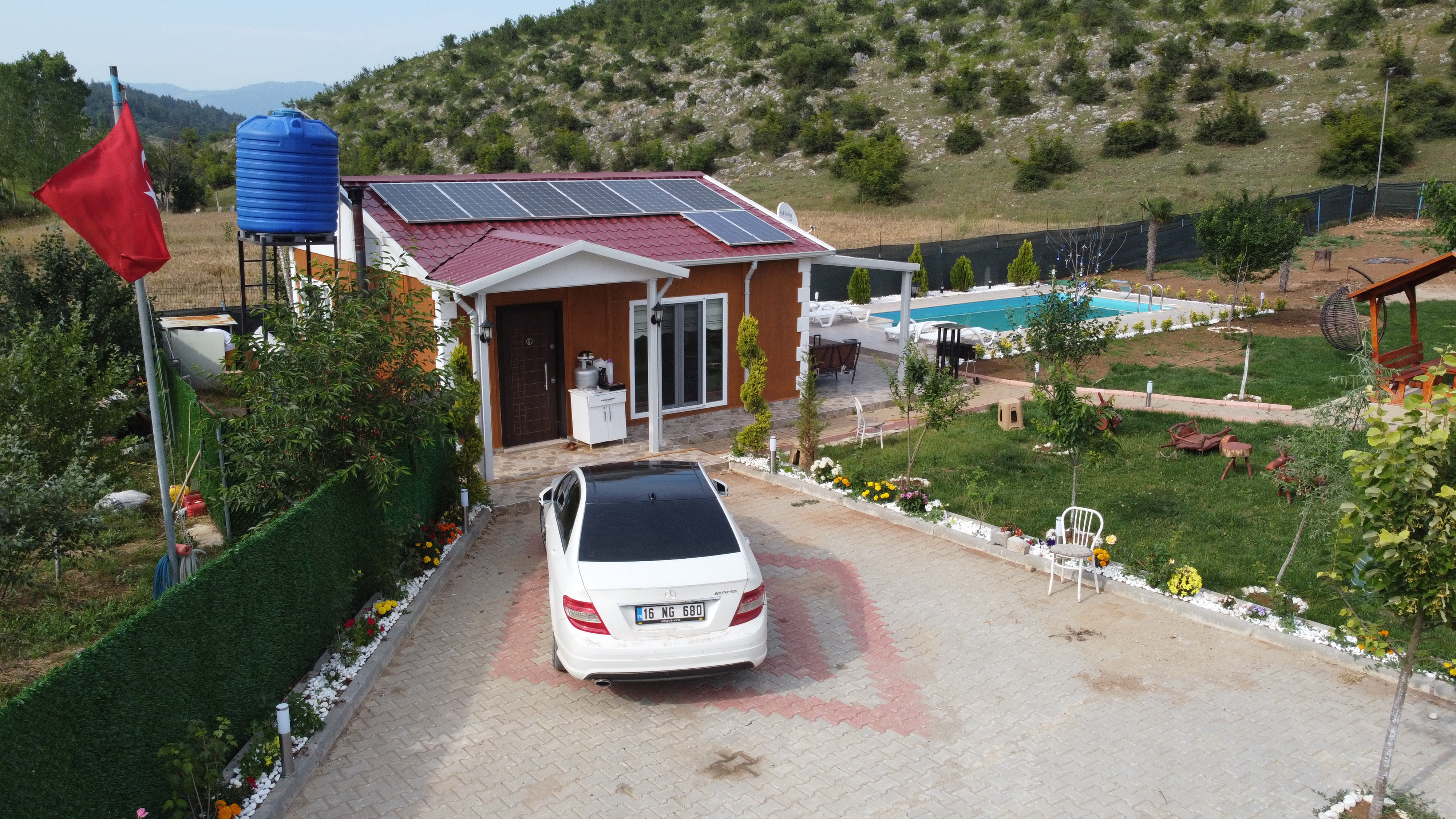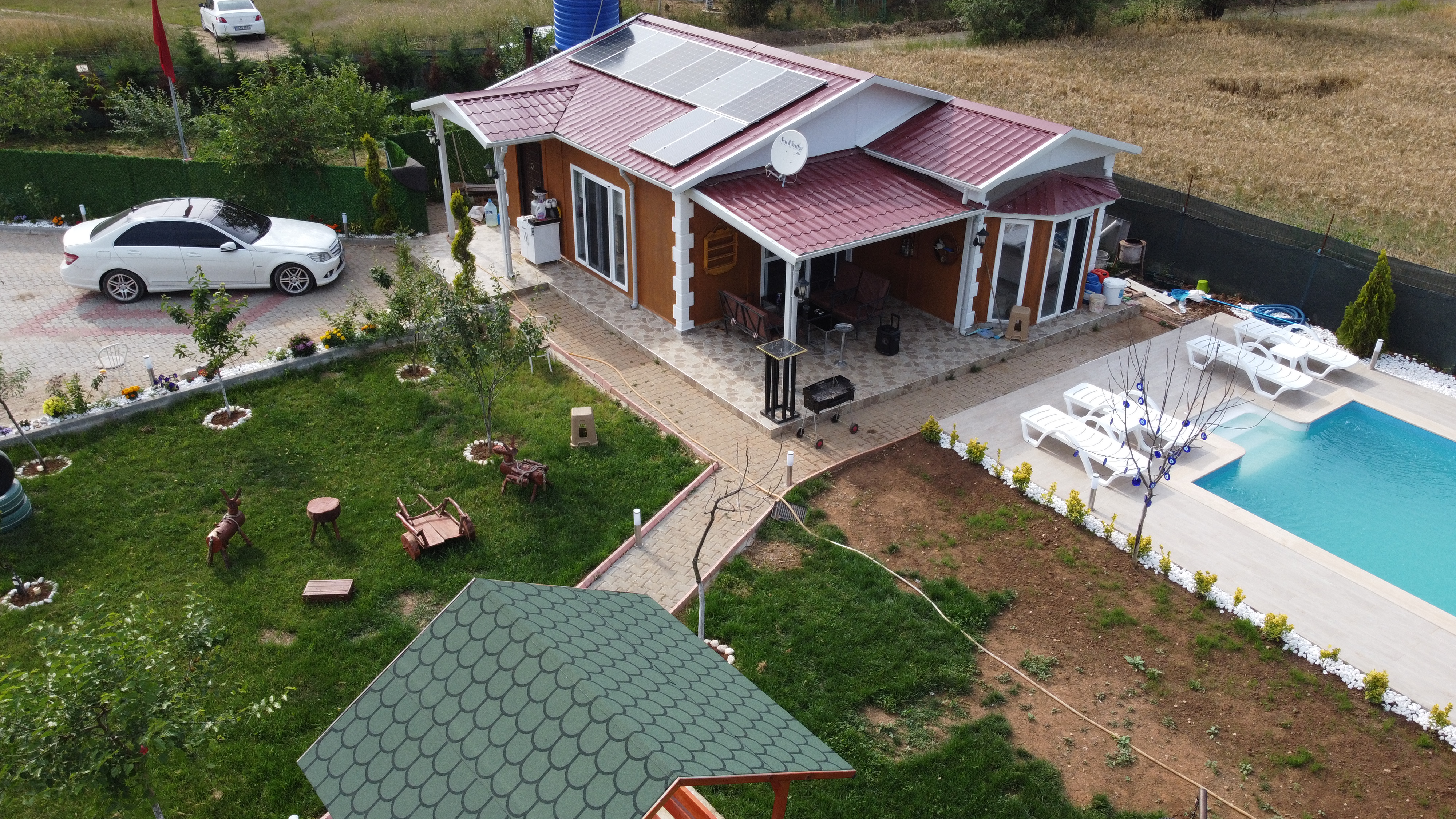 Bu tek katlı havuzlu ev tasarımı, 67 metrekarelik bir alanda konforlu ve modern bir yaşam sunmayı hedeflemektedir. Geniş iç mekanları, özel havuzlu bahçe alanı ve estetik detayları ile öne çıkan bu ev, çağdaş yaşam tarzına uygun bir konut alternatifi sunmaktadır.